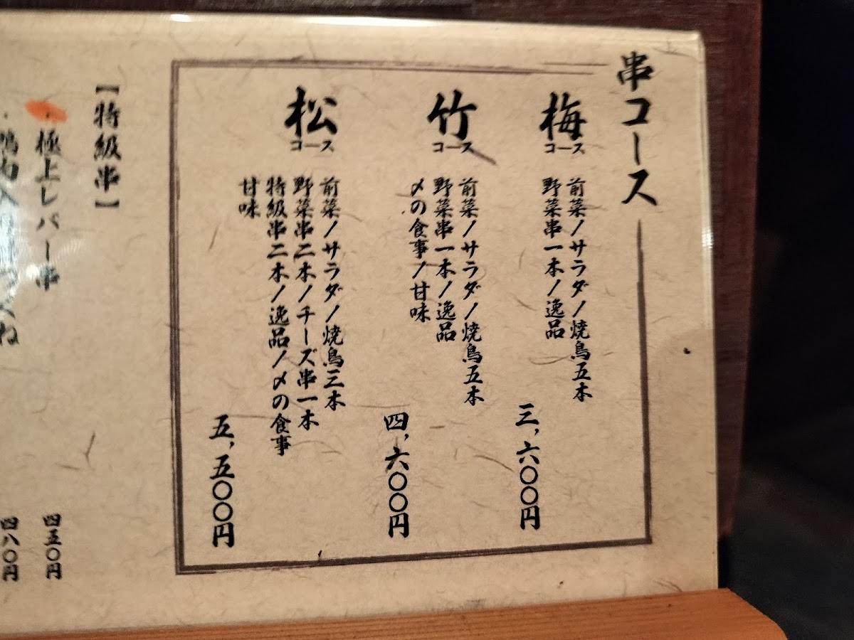 Yakitori Arakiyama Yotsuya offers a delightful selection of dishes that highlight the essence of Japanese cuisine. Their 梅コース (Ume Course) is a standout option, providing a well-curated experience of flavors. The restaurant also features a selection of fine drinks, including くらむぼん マスカットベリーA (Krambon Muscat Berry A), a perfect complement to the meal. Although the specific prices aren't provided, the quality and variety of the dishes on the menu promise a memorable dining experience. From perfectly grilled yakitori to refreshing beverages, each element is crafted to elevate the meal. Whether you're indulging in the 梅コース or sipping on a glass of くらむぼん マスカットベリーA, Yakitori Arakiyama Yotsuya offers an authentic and satisfying taste of Japan.